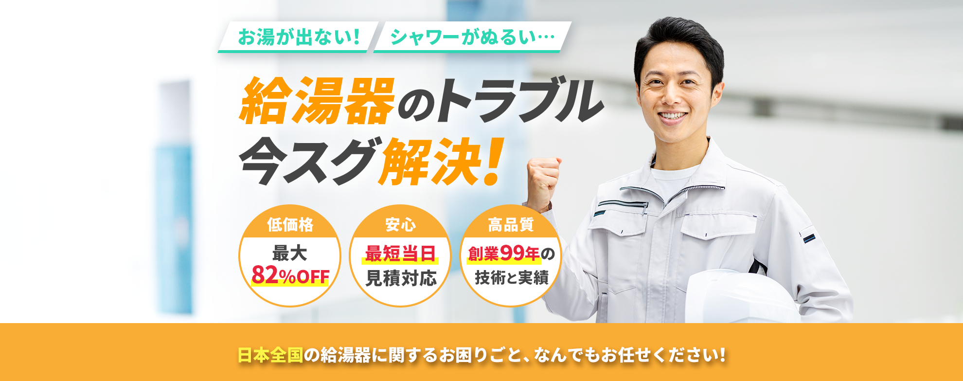 「お湯が出なくて困った…」そんな緊急のトラブルにも迅速に対応!最短当日対応で、早く・確実に解決へ導きます。