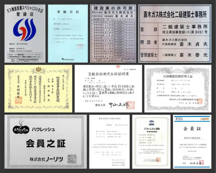 ガス機器の設置・交換に必要な資格や免許を取得。法令を守り、正しい施工を徹底しています。
